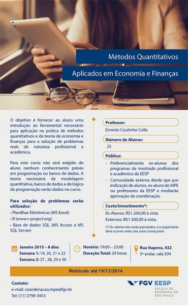 Curso de Verão - Métodos Quantitativos Aplicados à Economia e Finanças com o professor Ernesto Coutinho Colla