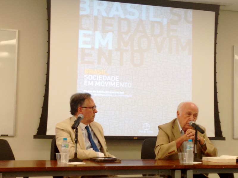Lançamento do livro: Brasil: sociedade em movimento com a presença dos coautores Luiz Carlos Bresser-Pereira e Luis Felipe de Alencastro, o lançamento contou ainda com um debate com o o ex-senador Roberto Saturnino Braga como convidado.