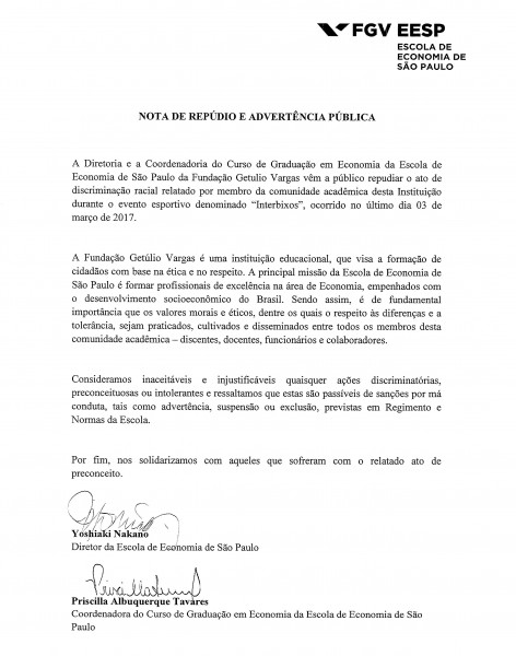 Nota de repúdio e advertência pública