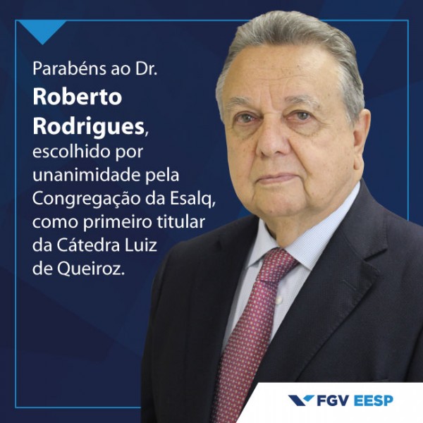Parabéns ao Dr. Roberto Rodrigues, escolhido por unanimidade pela Congregação da Esalq, como primeiro titular da Cátedra Luiz de Queiroz.
